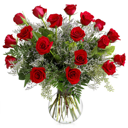 WONDERFUL BUNCH OF 18 RED ROSES, MINIMUM LENGHT 50 CMS, SELECT GREENERY AND FILLERS SUCH AS GYPSOPHYLA, SOLIDAGO, LIMONIUM, HYPERICUM, ETC, GIFT WRAPPED IN A ROMANTIC RED PAPER. ADD TO YOUR FLOWERS ANY OF OUR ITEMS FROM OR SECTION OF COMPLEMENTS, JUST CLICK HERE